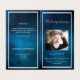 An elegant 4-page program. A blue sky as background, a faux silver frame and space for your photo. Personalize and add name, dates and your text.
