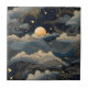 A blue night sky as background, decorated with stars and a moon. Retro style