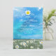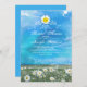 Painted sky and white daisies meadow photo collage. Romantic and creative white daisy rustic bridal shower invitation with bright blue watercolors sky.