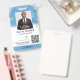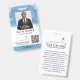 Church ID badge in white and blue with fluffy white clouds against a blue sky. Personalize the ID badge with an ID photo, name and title, the church logo, and a QR code.