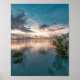 blue sky with red and dark clouds reflected on sea poster