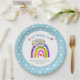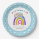 Blue Sloths Boho Rainbow Modern Boy Baby Shower Paper Plate