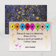 The back of the card has a blue smoke pattern and golden moons confetti.