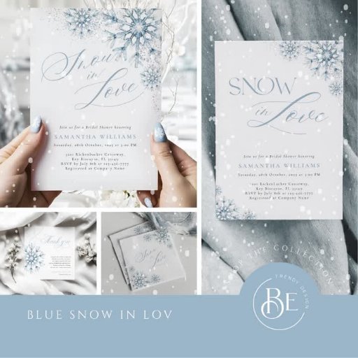 Add a touch of winter magic with our Blue Snow in Love Bridal Shower Invitation. The dusty blue colour palette and delicate watercolor snowflakes evoke a peaceful, wintry feel, while the silver glitter accents bring sparkle to the celebration. Featuring elegant calligraphy script, this modern and chic design is perfect for a Christmas bridal shower with a winter wonderland theme. Customise the text to create a unique invitation for your special event.