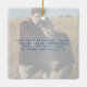 Navy Blue Minimalist Snowfall Photo Text Noise Film Overlay Ceramic Ornament keepsake featuring your personalised photo (squared, landscape or portrait, horizontal or vertical) into snowflakes frame and with white noise film vintage overlay, and your customised holiday, name and text in stylish and modern sans serif font, the font style and colours of ceramic ornament are fully customisable.