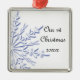 Celebrate your first Christmas holiday together as a just married newlywed couple with the festive Blue Snowflake First Christmas Together Ornament. Customise it with the current year. Create a personalised keepsake wedding gift, bridal shower gift or Christmas present . This one of a kind elegant 1st Christmas ornament features an intricate blue snowflake design on a white background.