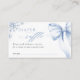 Elegant diaper raffle card for a baby boy winter shower. Features a soft blue bow with delicate snowflakes. A perfect game card to add fun and style to your celebration.