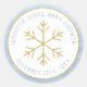 Celebrate your winter baby shower in style with these classic round snowflake favour stickers in icy blue and gold. Use them as cupcake toppers, party favour seals, or envelope accents to add a polished seasonal touch. Easily customise the name and date to make it your own!