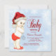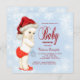 Adorable red Santa hat baby red and blue boys snowflake Christmas baby shower invitation. This beautiful snowflake baby shower invitation is easily customised for your event by adding your details in the font style and colour, and wording of your choice.