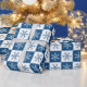 Blue Snowflake Chequered Pattern Christmas Holiday Wrapping Paper
