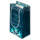 “Peace, joy & love.” A giant, fun, playful, white and turquoise snowflake illustration and modern typography on a rich, deep teal blue marble watercolor background help you usher in the holiday season. A white and turquoise confetti dot border frames the top. Feel the warmth and joy of the holidays whenever you use this stunning, graphic, personalised small size gift bag. Matching envelopes, stickers, tote bags, wrapping paper, pillows, home décor, and more are also available. Turns a great present into something even better!