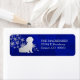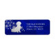 This distinctive return address label features a silver silhouette Shih Tzu dog image in front of a spray of ornate silver snowflakes. The image is placed on a gradient deep blue background. Your custom text is in matching silver at the right of the image.