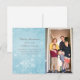 Whimsical yet simple Snowflake Swirls Holiday Photo Postcard featuring an array of swirl flourishes and snowflakes on a light blue watercolor look background. This elegant photo postcard is easy to customise with a photo and your personalised Christmas greeting. Click "customise it" to find additional personalisation options. Photography © Storytree Studios, Stanford, CA
