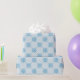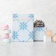 This trendy wrapping paper features blue snowflakes in a square diagonal pattern against a light blue background. Perfect if you're looking for a fun wintry / Christmas holiday design for your gift wrappers.