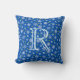 Snowflakes Royal Blue Navy Blue Modern Monogrammed Throw Pillow