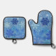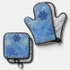 Blue Snowflakes Design Oven Mitt and Pot Holder Set.