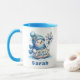 Spread holiday cheer with this Personalised Blue Snowman Merry Christmas Sign Mug! This charming Christmas coffee mug features an adorable snowman dressed in a cosy blue hat and scarf, holding a festive 'Merry Christmas' sign and a sparkling snowflake wand. Easily customise it with any name to make it a perfect holiday gift, a warm greeting, or a delightful addition to your winter décor