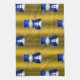 A cute and colourful Christmas pattern featuring snowmen dressed in blue velvet top hat and vests, on a festive golden background with gold stars to add a stylish and whimsical touch to your Christmas home decorations this year.