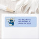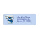This return address label features a cute cartoon image of a snowman wearing a blue hat and scarf, and holding up a sign that says "Happy New Year!". It is placed on a lighter matching blue background. Easy to customise with your own name and address.