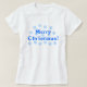 Spread the holiday cheer with this snowy Merry Christmas t shirt in blue text and sprinkled with snowflakes.