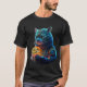 Blue Space Cat Astronaut Holds Glowing Module T-Shirt