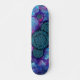 a decorative abstract artwork of blue mandalas floating like stars through space in blue and purple colors on a skateboard