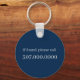 This unique keychain features a silver silhouette winged fairy that is tending to a flower. The image is set against a pretty blue background with tiny star lights. Her name is in silver at the bottom. The matching solid blue back has two custom text fields.