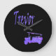 Blue Sparkle Trevor, Name, With Fire Truck, Large Clock