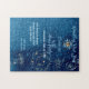 Throw a glittering spectacular party on New Year's Eve for family and close friends. Turn this New Year into a great game with personalised puzzles! With this shimmering game puzzle, the celebration becomes glamourous, intense and elite. The artwork features deep tones of blue, shining blue flora and spiralling stars with jewel gold vibes. Analogous to a winter dark night filled with twinkling stars, it has a matching brilliance and deep blue ambiance to make your New Year's party glimmer even more.