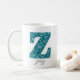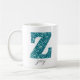 Add a glittery touch to your morning coffee! This chic girly mug features an aqua blue sparkly glitter monogram letter Z with your name underneath in a grey script.
