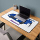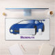 Blue sports car with airfoil illustration desk mat