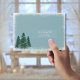 The blue-green colours in this Christmas envelope match the cards made for this collection. It’s a soft colour, showing a manically forest of Christmas trees in the mist of dusk. Add your return address to the back to complete your holiday correspondence. Blessings!