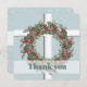 A window to the outside winter snowfall. This card has the design of a window with a Christmas wreath hanging in front. The theme continues on the back, where your own message is in the center. I love the soft color of blue-green, along with the “window look”, and the gentle snowfall. Blessings!