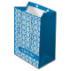 Blue Squares patterned gift bag featuring small blue toned squares with space for custom text in the front. © Morning 6