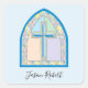 A stained glass window in shades of blue, yellow and mint on a blue background, these stickers are perfect for first communion, baptism or christening special events. MATCHING items in our collection.