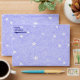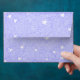 Envelopes with an etching of a night sky and stars in light blue with dark blue letters for your return address.