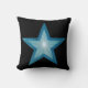 Modern design with a "shining" blue and white star on a black background your choice of text on the back. Throw pillow with a customisable design for you to personalise with your own text, images and ideas. This is a digital art image created using original photographs and digital techniques and printed onto fabric, it does not shine or contain real sparkles.