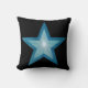 Blue Star black throw pillow square blue back