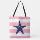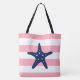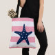 Blue Star Fish on Pink Stripes Tote Bag