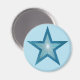 Modern design with a "shining" blue and white star on a pale blue background. Fridge magnet with a customisable design for you to personalise with your own text, images and ideas. Please note that this is a printed image created using original photographs and digital techniques, it does not shine or contain real sparkles.