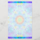 A blue, yellow and orange hippy style mandala kaleidoscope pattern with stars.