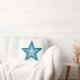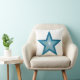 Modern design with a "shining" blue and white stars on a white background. Throw pillow with a customisable design for you to personalise with your own text, images and ideas. This is a digital art image created using original photographs and digital techniques and printed onto fabric, it does not shine or contain real sparkles.
