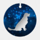 This pretty Holiday ornament features a silver silhouette Golden Retriever Dog image surrounded by a blue star light night sky. The back of the ornament has the same blue background, and two text fields for you to customize. Elegant for the Golden owner.