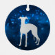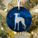 This pretty Holiday ornament features a silver silhouette Whippet Dog image surrounded by a blue star light night sky. The back of the ornament has the same blue background, and two text fields for you to customize. Elegant!