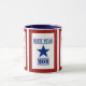 Blue Star Mum. Military family support for sons and daughters serving in the United States Armed Forces, currently deployed or who are veterans of military service. Blue star on field of white with red border.