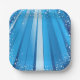 Blue Starburst Sparkle with Shining Light Rays Paper Plate