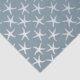 Blue-grey, starfish pattern tissue paper for all-occasion. Silver white sea stars cover a dark background.