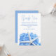 Blue floral wedding thank you message cards. A pretty starfish and hydrangea card design with big "thank you" at the top in blue. Add a message and signature using the paragraph template. Perfect for newlyweds or brides.