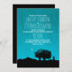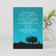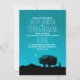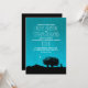 Romantic rustic wedding invitation with blue starry night, moon, two trees growing together and couple silhouette.