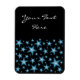 Modern design with "shining" blue and white stars on a black background. Fridge magnet with a customisable design for you to personalise with your own text, images and ideas. Please note that this is a printed image created using original photographs and digital techniques, it does not shine or contain real sparkles.